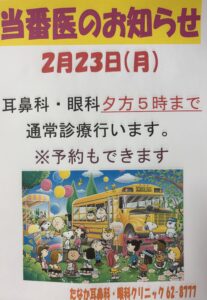 当番医のお知らせ 2026.02.6 Tweet Share Hatena Pocket RSS feedly Pin it Tweet Share Hatena Pocket RSS feedly Pin it 眼科休診のお知らせ前の記事 眼科休診のお知らせ次の記事